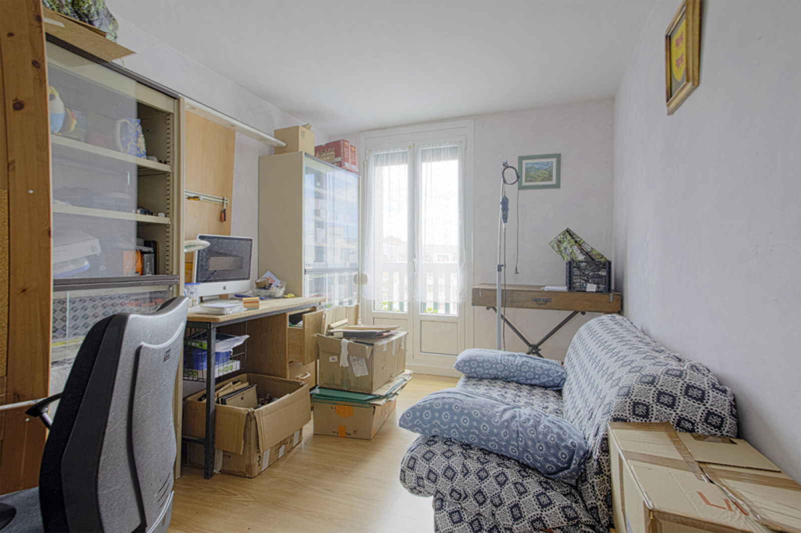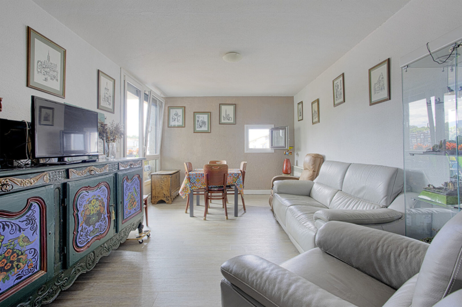 L'appartement se compose d'une cuisine qui donne sur le salon et de trois chambres.